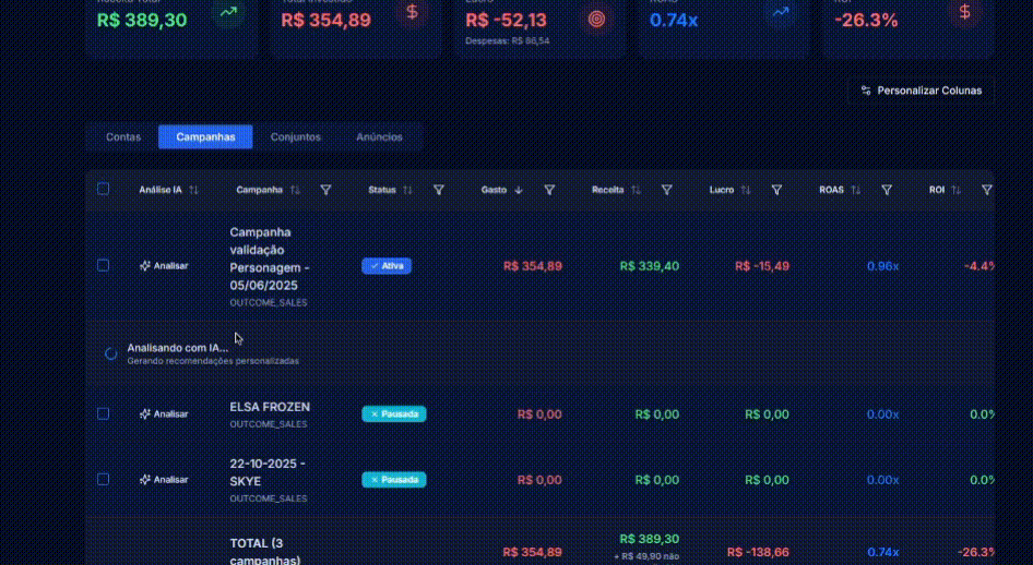 Sem visão de lucro líquido por campanha, você decide pelo CPA ou achismo — e acaba desligando o que realmente dava mais margem.
