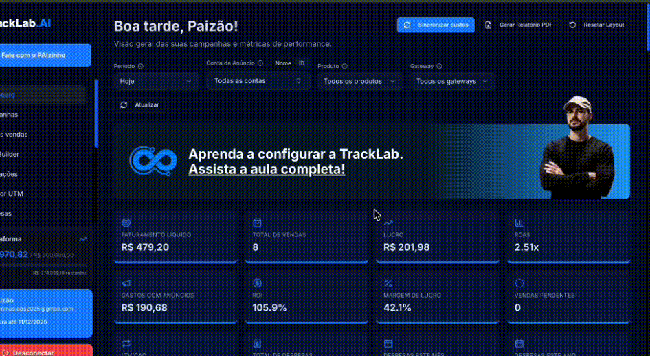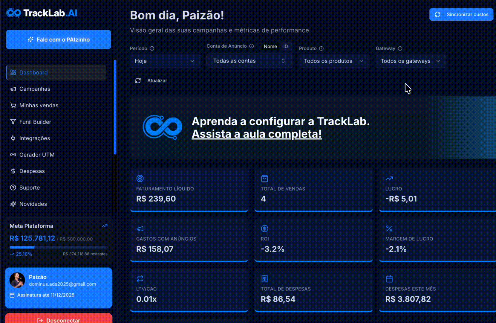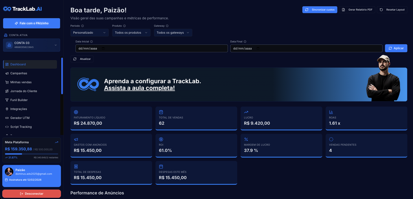 TrackLab mostra em tempo real onde cada real investido está gerando lucro — e onde suas campanhas estão simplesmente queimando caixa.